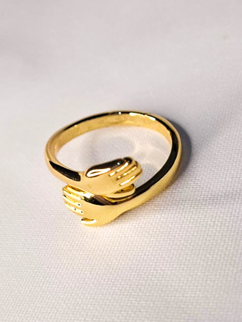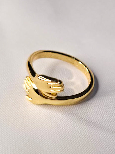 Este anillo ajustable en dorado envuelve tu dedo como un abrazo cálido, recordándote momentos especiales y vínculos que te acompañan. Su diseño delicado expresa sentimientos con elegancia y significado, perfecto para regalar o para tener cerca lo que más amas.