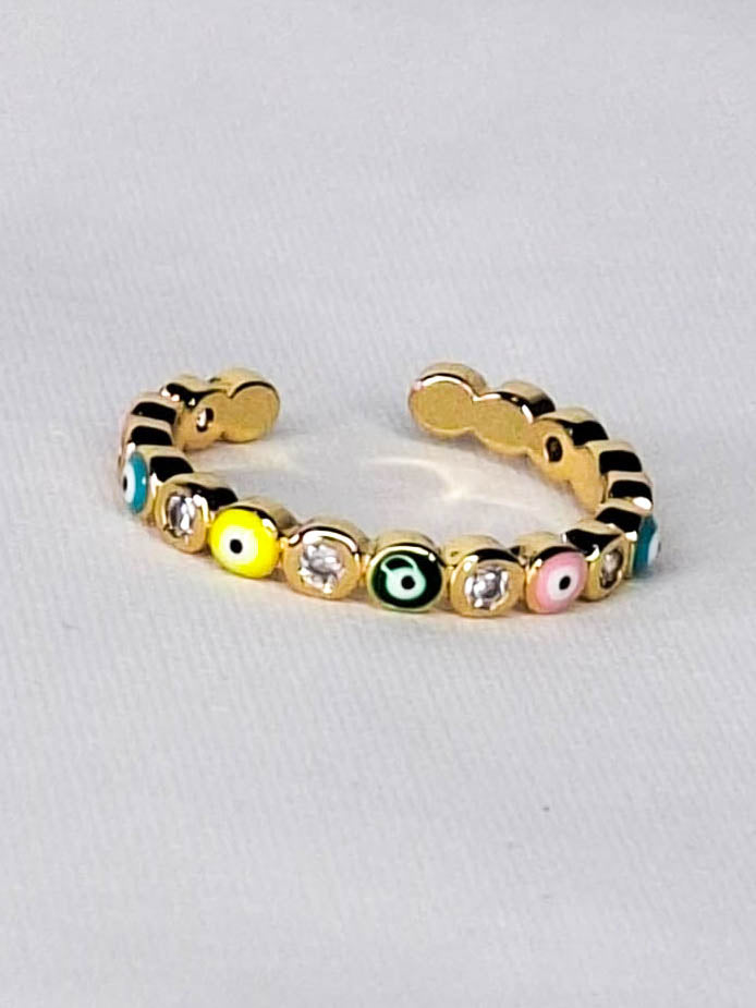 Ojo Guardián es un accesorio ajustable en chapa de oro que combina elegancia con energía positiva, ofreciendo protección contra las malas vibras. Su símbolo místico funciona como un amuleto que atrae buenas energías y mantiene el equilibrio, perfecto para quienes desean llevar estilo y significado espiritual en el día a día.