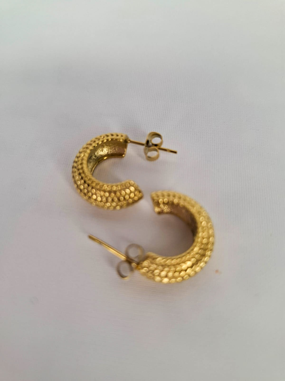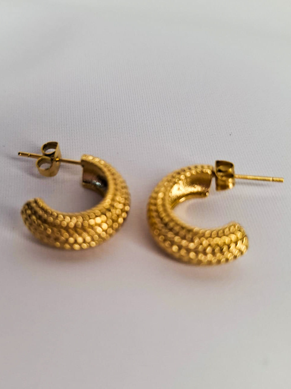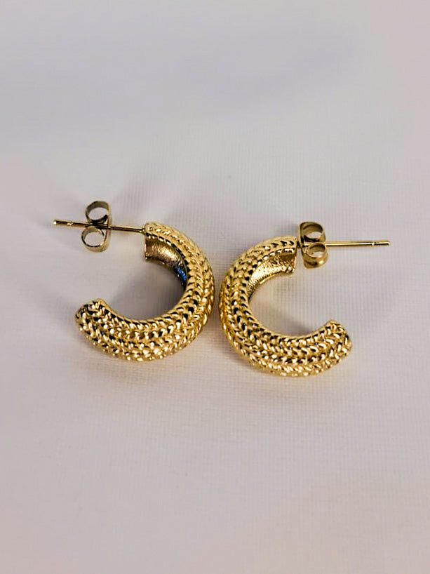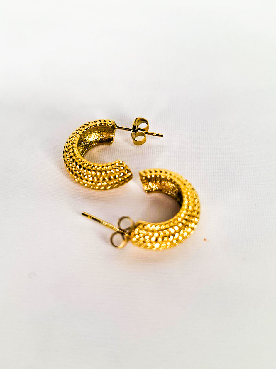 Media Luna Áurea evoca la elegancia de la luna en su forma más pura, fusionando un diseño moderno con la resistencia del acero. Estos aretes son para quienes llevan consigo un brillo sutil pero constante, una presencia discreta que no pasa desapercibida. Perfectos para acompañar cada paso con estilo, personalidad y un toque de magia dorada. ¡Un accesorio que celebra la fuerza en la delicadeza.!