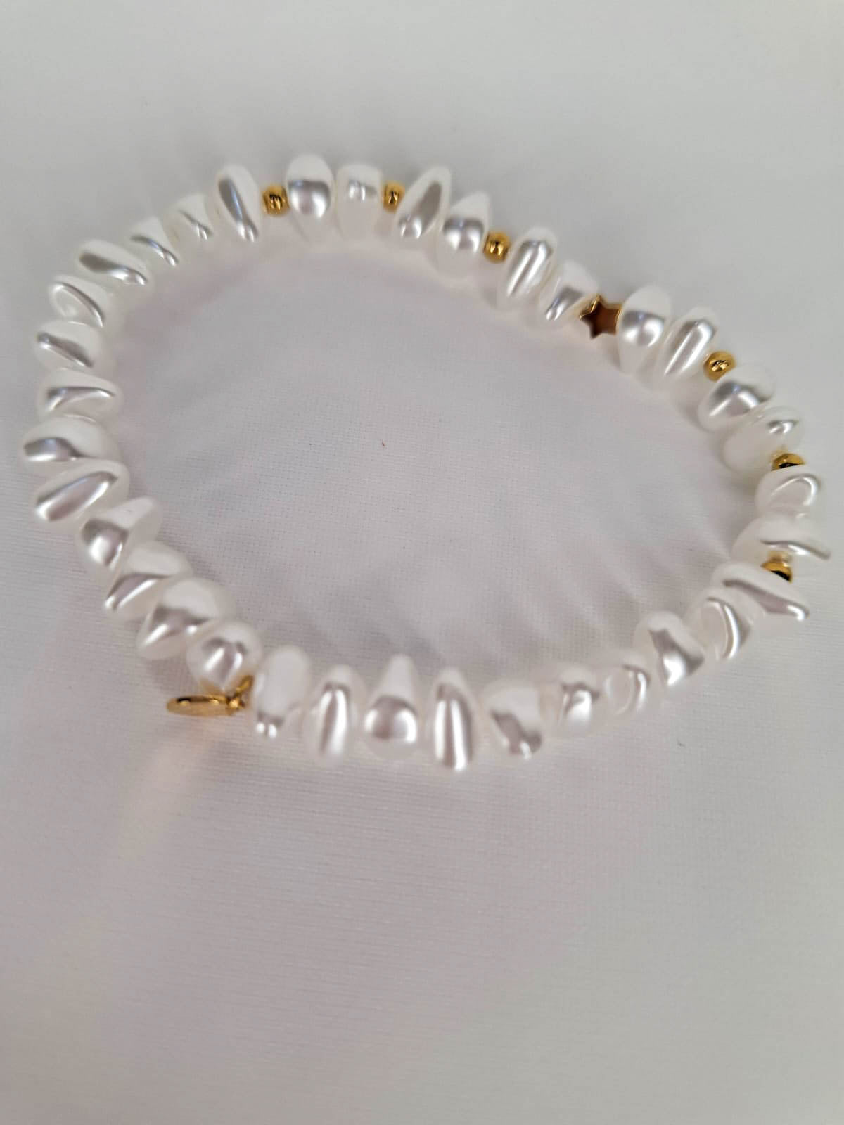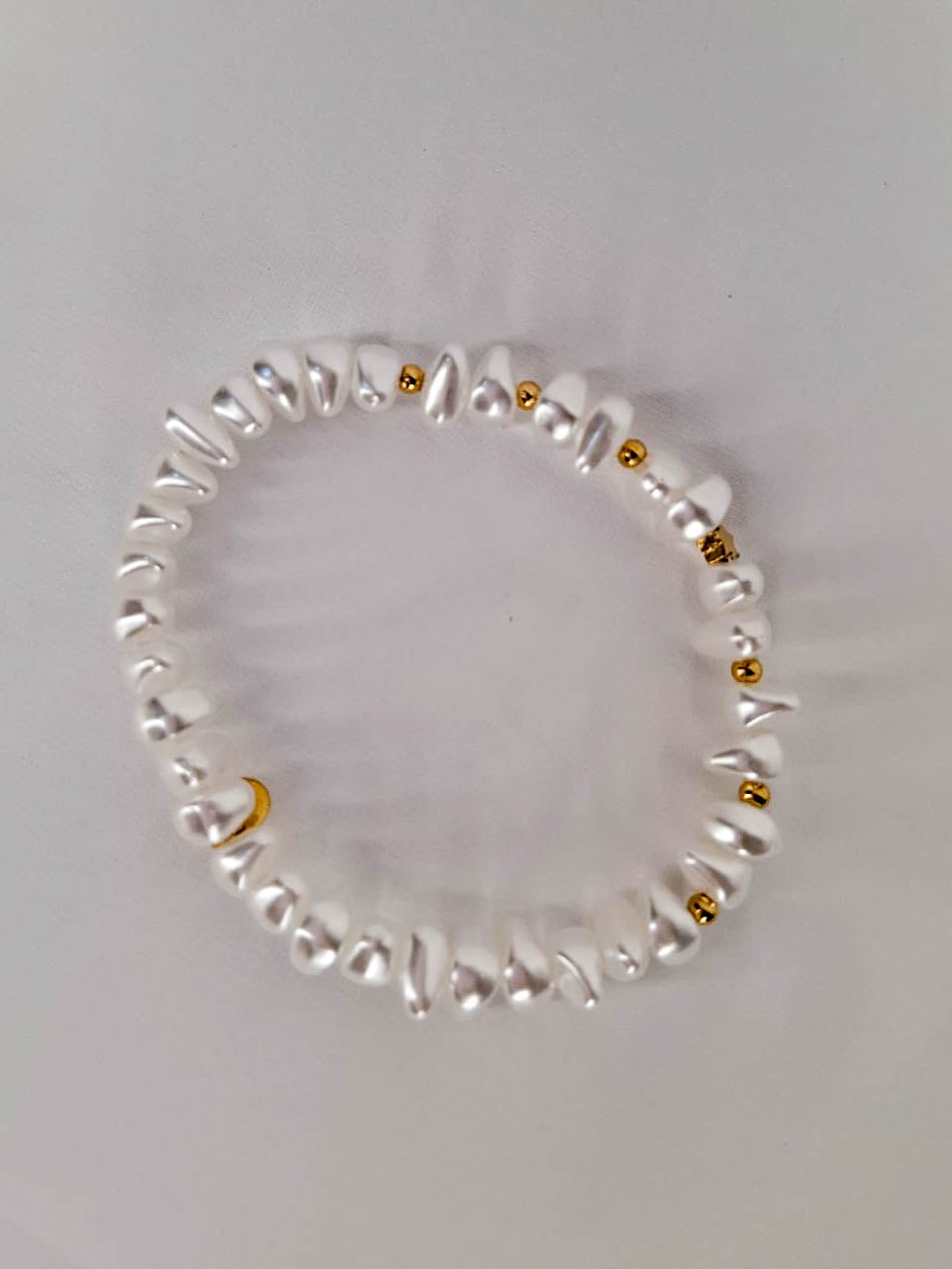 Sutil, femenina y luminosa, esta pulserita elástica de perlas abraza tu muñeca con elegancia natural. Inspirada en la energía lunar y la belleza serena del mar, es el complemento perfecto para quienes conectan con lo delicado, lo etéreo y lo eterno. Su diseño versátil combina con todo, aportando un destello suave y armonioso a tu estilo diario.🌸